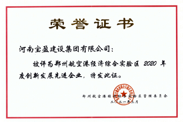 2021年宝盈建设被评为港区年度创新发展先进企业