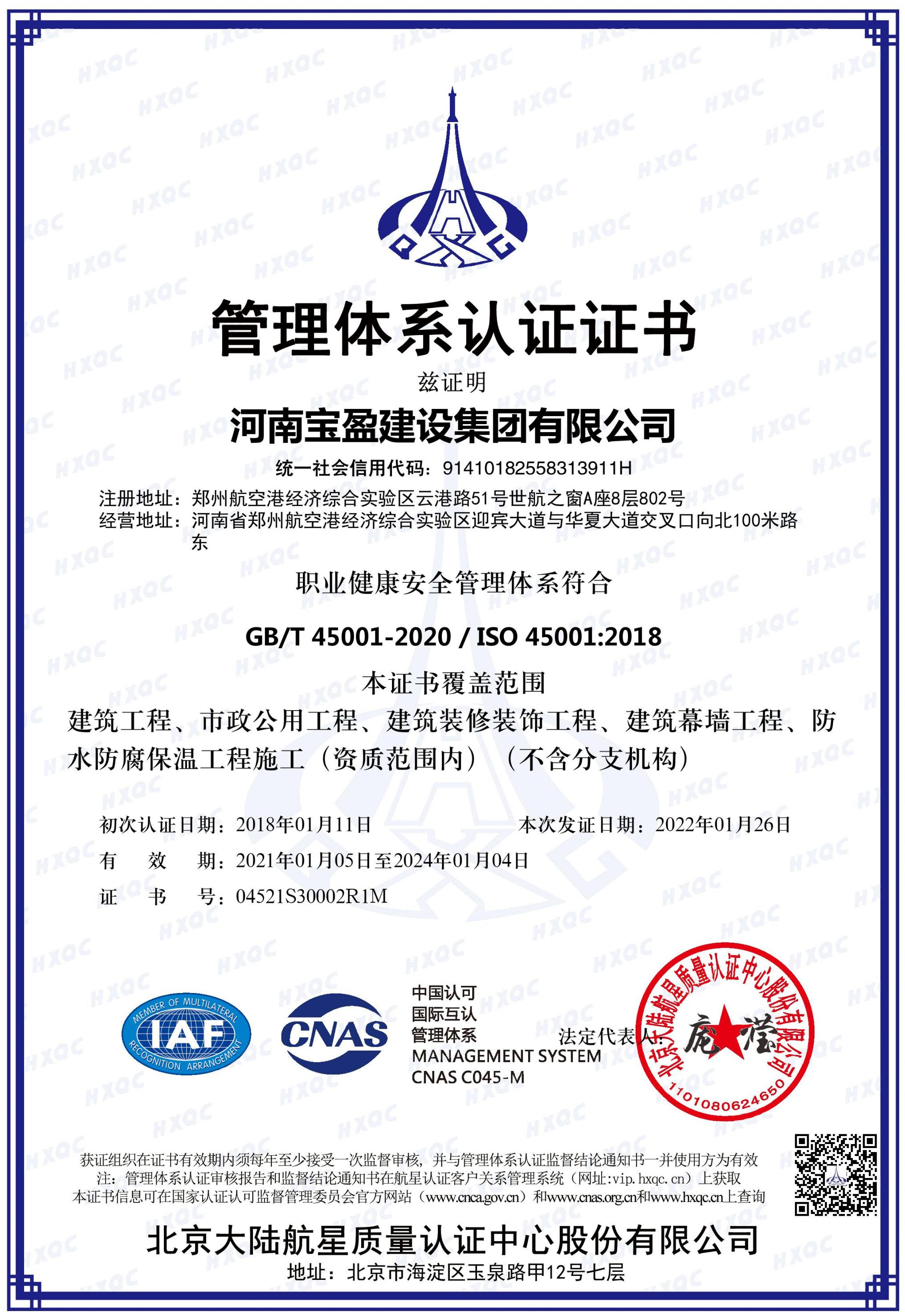 2022年职业健康安全管理体系认证