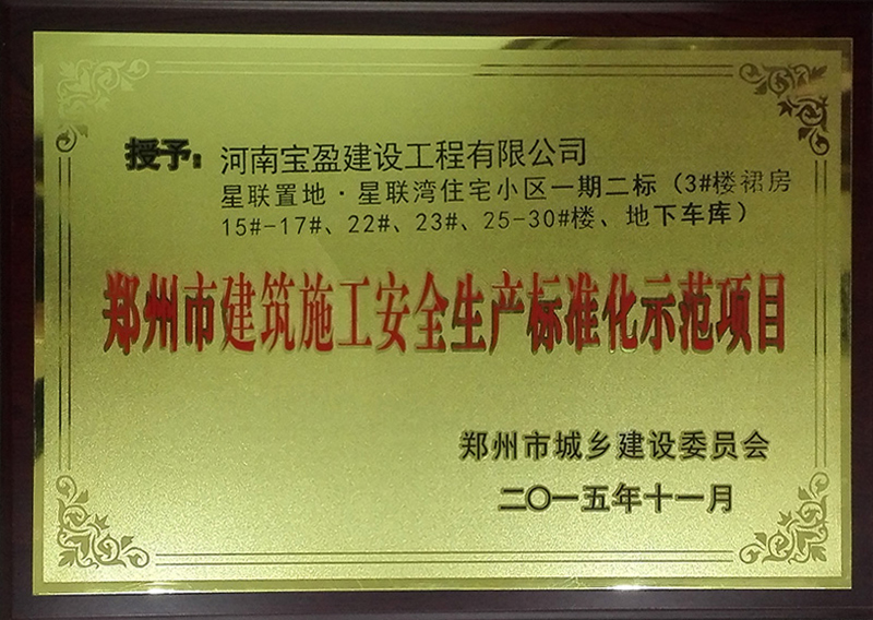 2015年郑州市建筑施工安全生产标准化示范项目