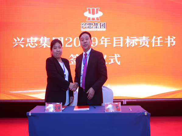 为贯彻落实集团公司下达的2019年度重点任务,实现兴忠集团年度经营目标任务的有效分解,集团总裁高兴中与集团各中心、各分子公司负责人签署了2019年经营目标责任书。年度目标责任书的签订,进一步强化了目标管理理念,形成契约机制,更好地落实经营责任,为实现兴忠集团2019年度战略发展奠定了坚实的基础。