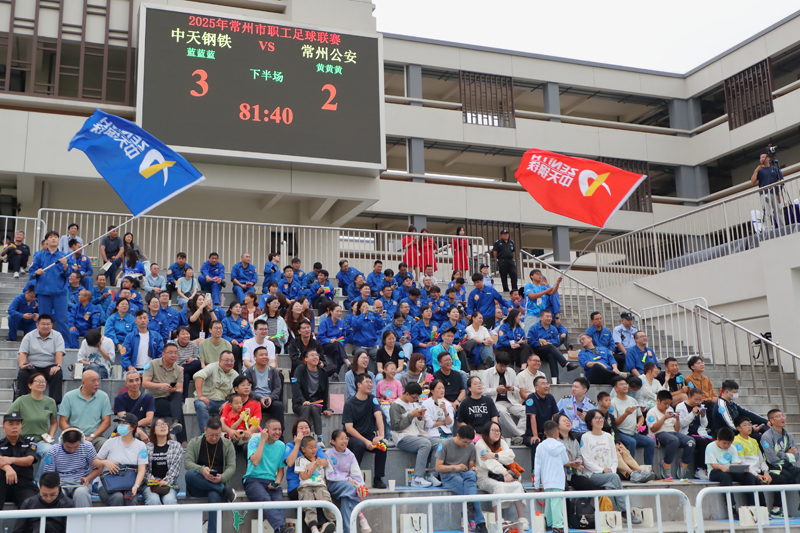 9月20日下午,2025年常州市职工足球联赛开幕式在武进西园实验初级中学举行,全国劳模、中天钢铁集团董事局主席、总裁、党委书记董才平与多位劳模工匠代表共同为联赛开球。 开幕式后,全市8个赛区的小组赛同步开赛。在经开区实验初级中学,常经开中天钢铁队坐镇主场,迎战常州公安队。 比赛伊始,常经开中天钢铁队便展现出强烈的进攻欲望。开场第17分钟,24号盛洋率先破门,为常经开中天钢铁队斩获联赛首球! 短短10分钟后,98号杨毅再下一城,将比分扩大为2-0。 上半场结束前,常州公安队扳回一球,随后双方以2-1的比分进入下半场。 易边再战,仅过4分钟,杨毅完成梅开二度,帮助常经开中天钢铁队再度扩大领先优势。 常州公安队虽在比赛第65分钟,凭借一记禁区外的世界波破门再度缩短分差,但随着双方体能下降,此后均未能改写比分。 最终,常经开中天钢铁队以3-2战胜常州公安队,收获联赛开门红! “两队实力接近,这场比赛赢得不容易!”常经开中天钢铁主教练恽晖在赛后表示,“这是我们主场的胜利,更是全体经开区职工的荣誉!” 比赛期间,常州经开区总工会主席符涛,中天钢铁集团副总裁、党委副书记李军还专程来到球员休息室,亲切看望常经开中天钢铁队全体队员,为大家鼓舞士气、加油助威,充分肯定了球队团结拼搏、奋勇争先的精神面貌。 赛场外,近百名中天职工组成的啦啦队统一身着蓝色工装,挥舞旗帜,高喊“经开加油,中天必胜”,为球队持续注入昂扬斗志。 看台上,常经开中天钢铁队20号后卫顾天峰的两位儿子顾才嘉、顾树阳成为最可爱的助威团。“爸爸最棒!爸爸加油!”孩子们纯真的呐喊声感染了全场观众。“我们是球队最坚实的后盾!无论胜负,都会一如既往地支持他们!”中天球迷激动地说。 赛后,中天钢铁职工自觉清理座位周边垃圾并带离赛场,文明观赛行为成为又一道靓丽的风景线。 10月7日,小组赛第二轮,常经开中天钢铁队将继续在主场经开区实验初级中学,迎战来访的常高新小松队。期待他们再创佳绩,延续胜利势头!